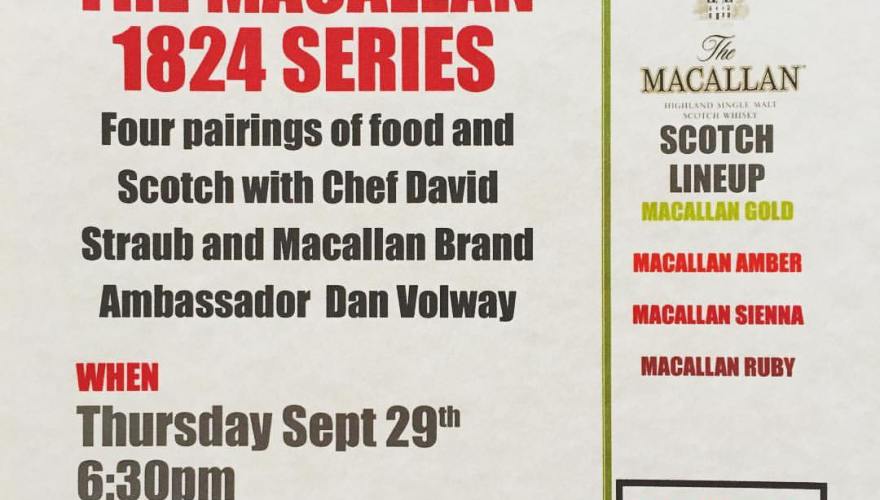 Join Chef David Straub and The Macallan Brand Ambassador Dan Volway for an evening of fine good and stellar #Scotch #Whisky.