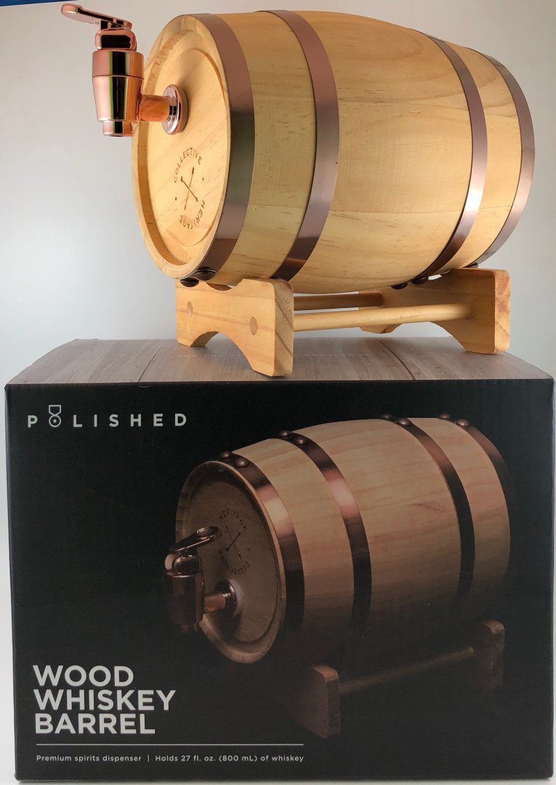The Wood Whiskey Barrel makes a cool addition to any bar.